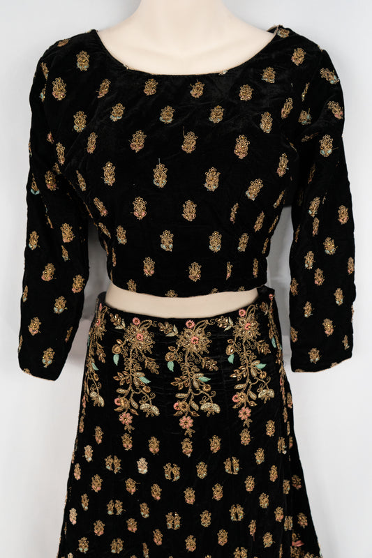 COSMIC BLUE VELVET LEHENGA SET