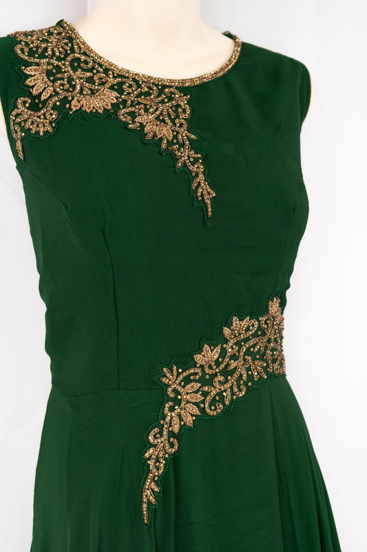BOTTLE GREEN GEORGETTE GOWN