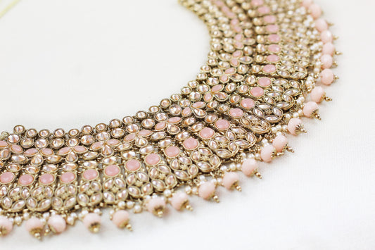 KUNDAN NECKLACE SET WITH PEACH BEADS (4PC)