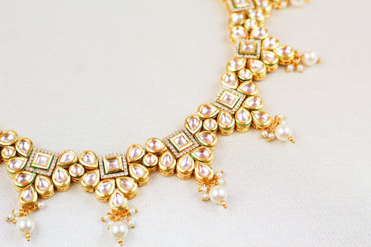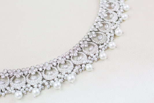 KUNDAN AND PEARL CHOKER SET (3PC)