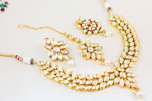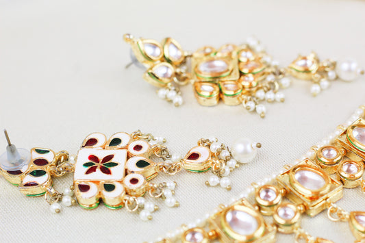 HIGH QUAILTY KUNDAN NECKLACE SET WITH MINAKARI (4PC)