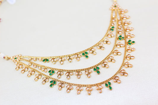 TRIPLE CHAIN POLKI NECKLACE SET WITH JHUMKI (3PC)