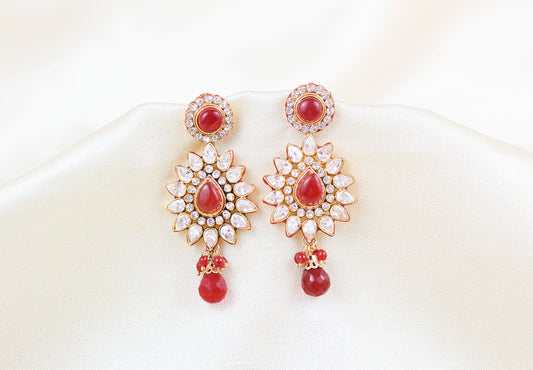 POLKI AND KUNDAN EARRING WITH RUBY BEADS