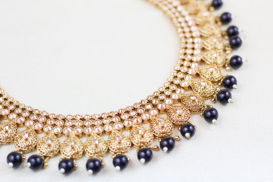 POLKI NECKLACE SET WITH BLACK BEADS (4PC)