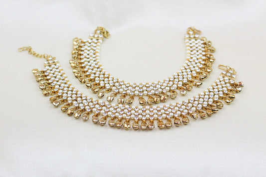 RHINE STONE LEAVES AND PEARL ANKLETS
