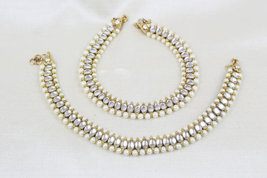 SILVER FINISH OXIDIZED KUNDAN ANKLETS