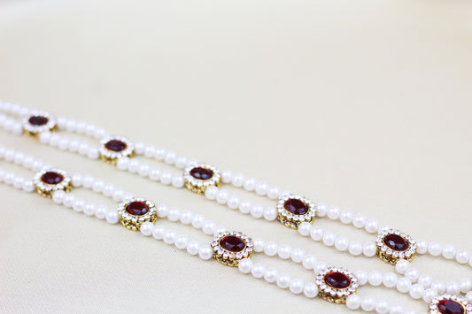 DOUBLE PEARL CHAIN AND RED STONE WAIST BELT