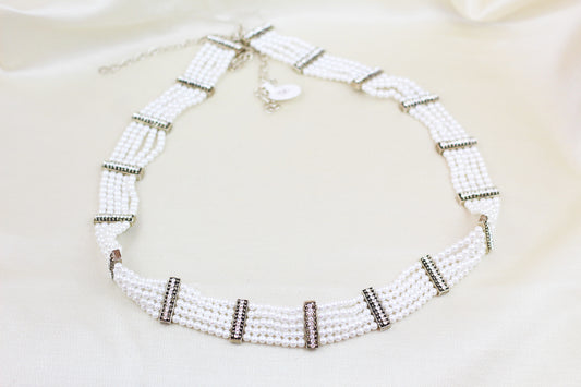 SQUARE RHINE STONE WAIST BELT WITH PEARL FRILL