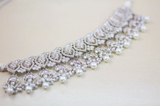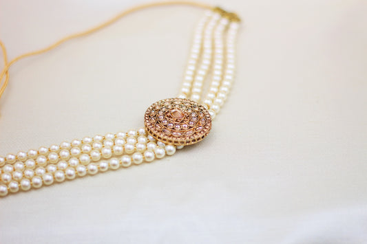 KUNDAN AND PEARL CHOKER SET (3PC)