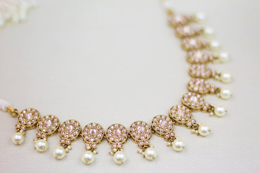 POLKI CHOKER SET WITH PINK PEARL (4PC)