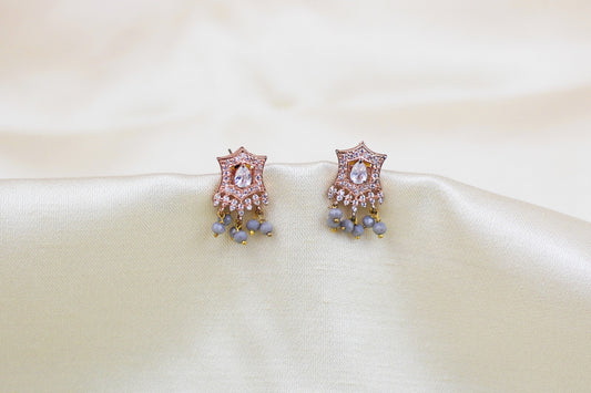 COPPER FINISH AD CHOKER SET WITH GREY BEADS (3PC)