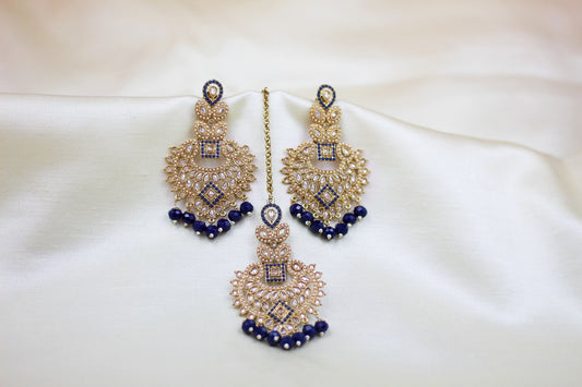 POLKI CHOKER SET WITH NAVY BLUE PEARLS (4PC)