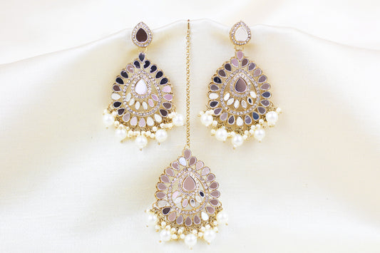GOLD FINISH MIRROR WORK NECKLACE SET (4PC)