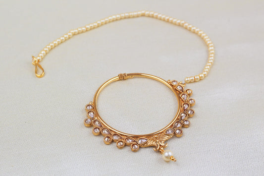 KUNDAN NOSE RING WITH PEARL CHAIN