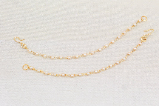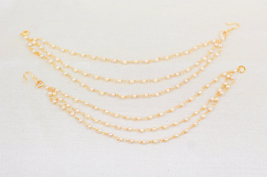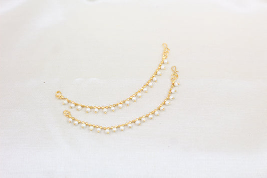 GOLD FINISH DOUBLE CHAIN WITH PEARL DANGLERS SAHARE