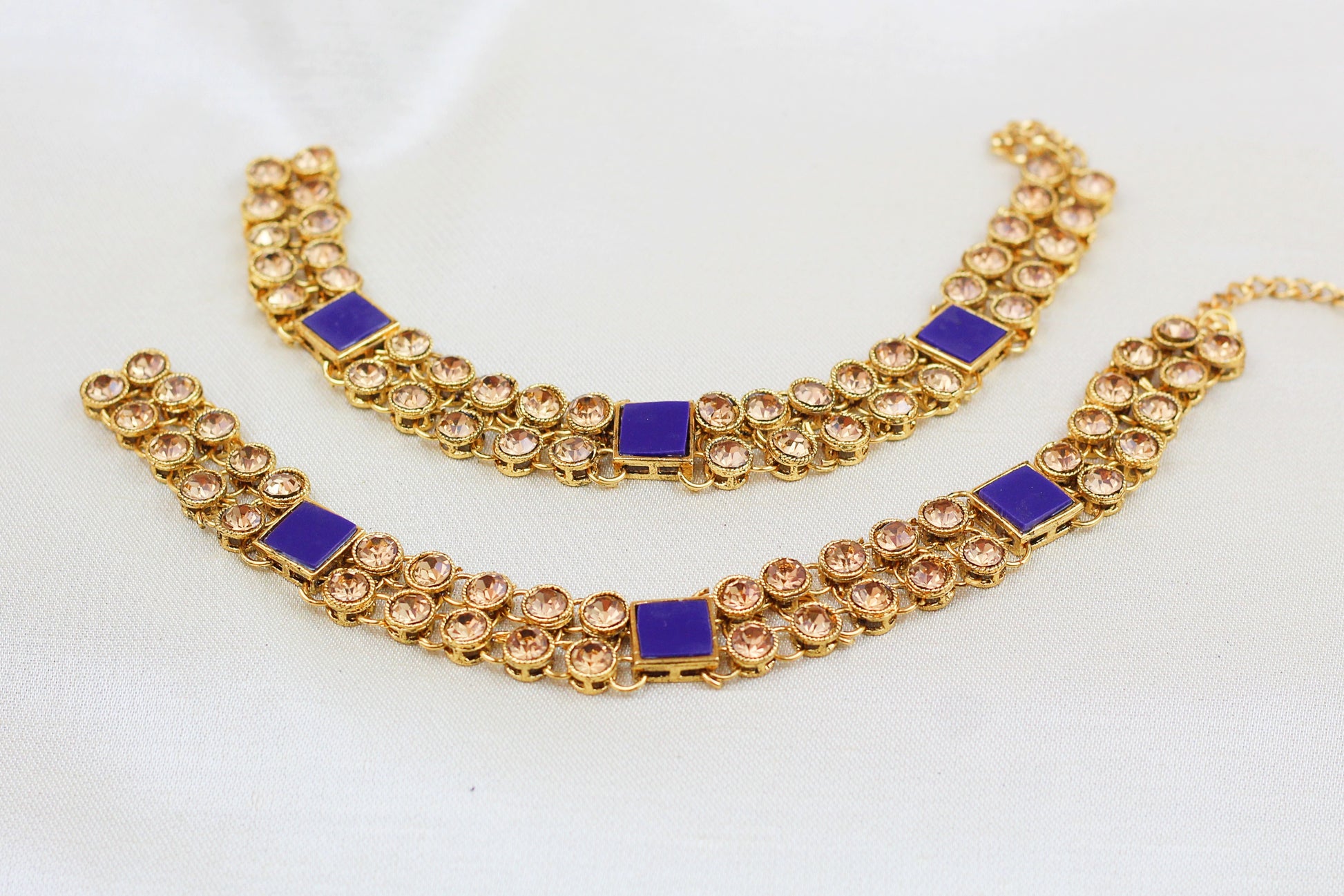 GOLD STONE WITH BLUE SQUARES DESIGN ANKLETS