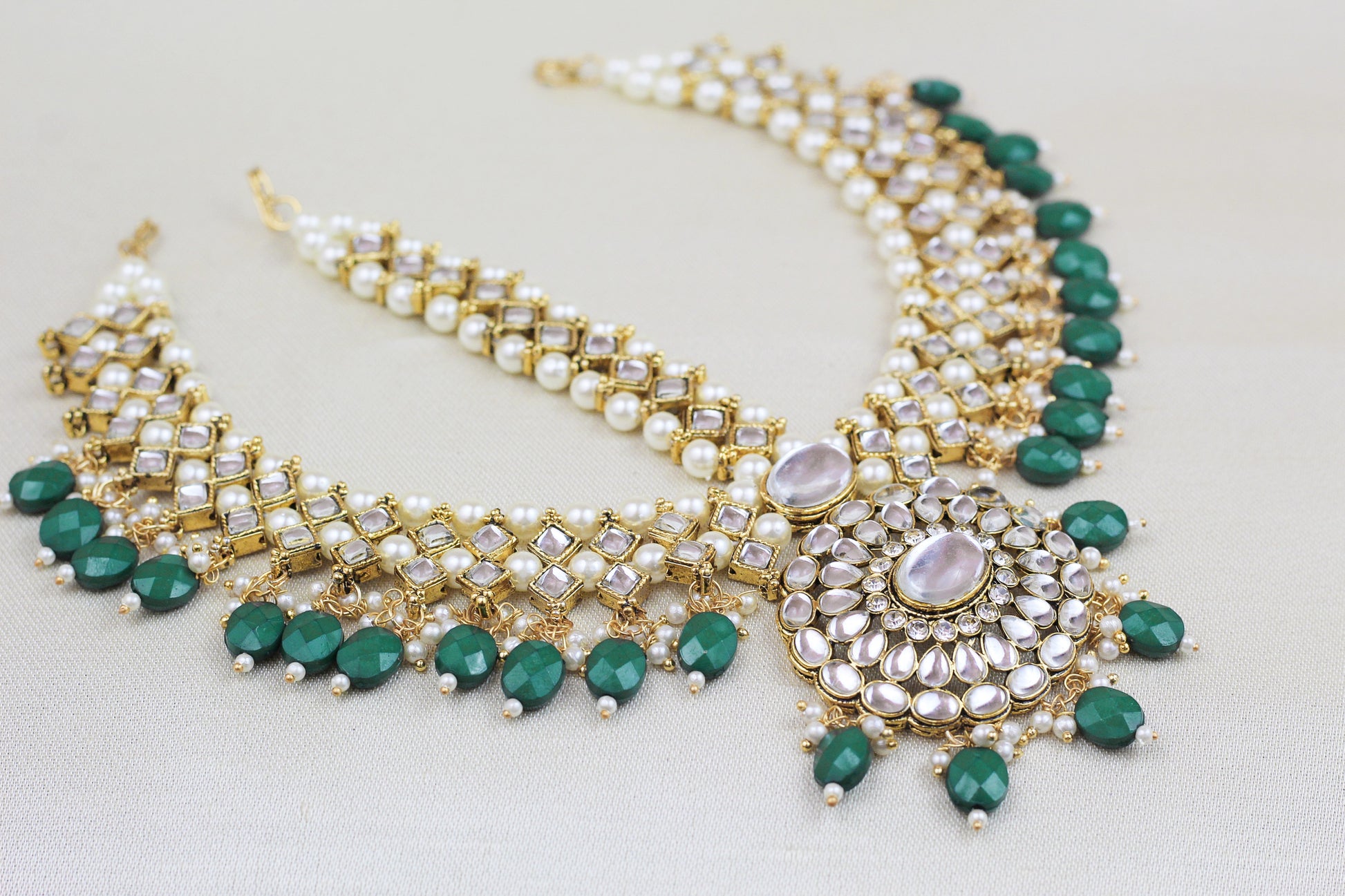 KUNDAN WITH EMERALD GRREN BEADS MATTHA PATTI