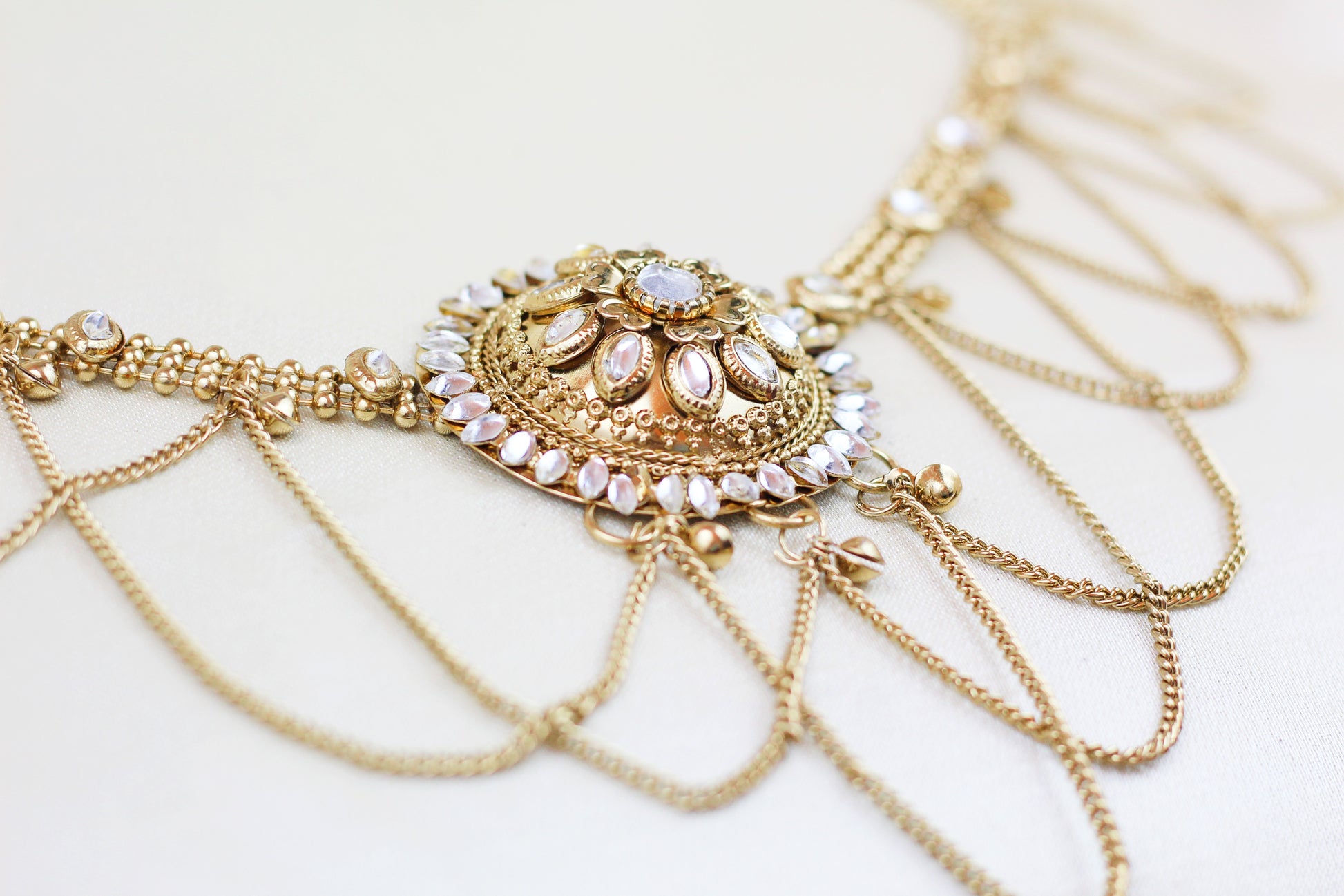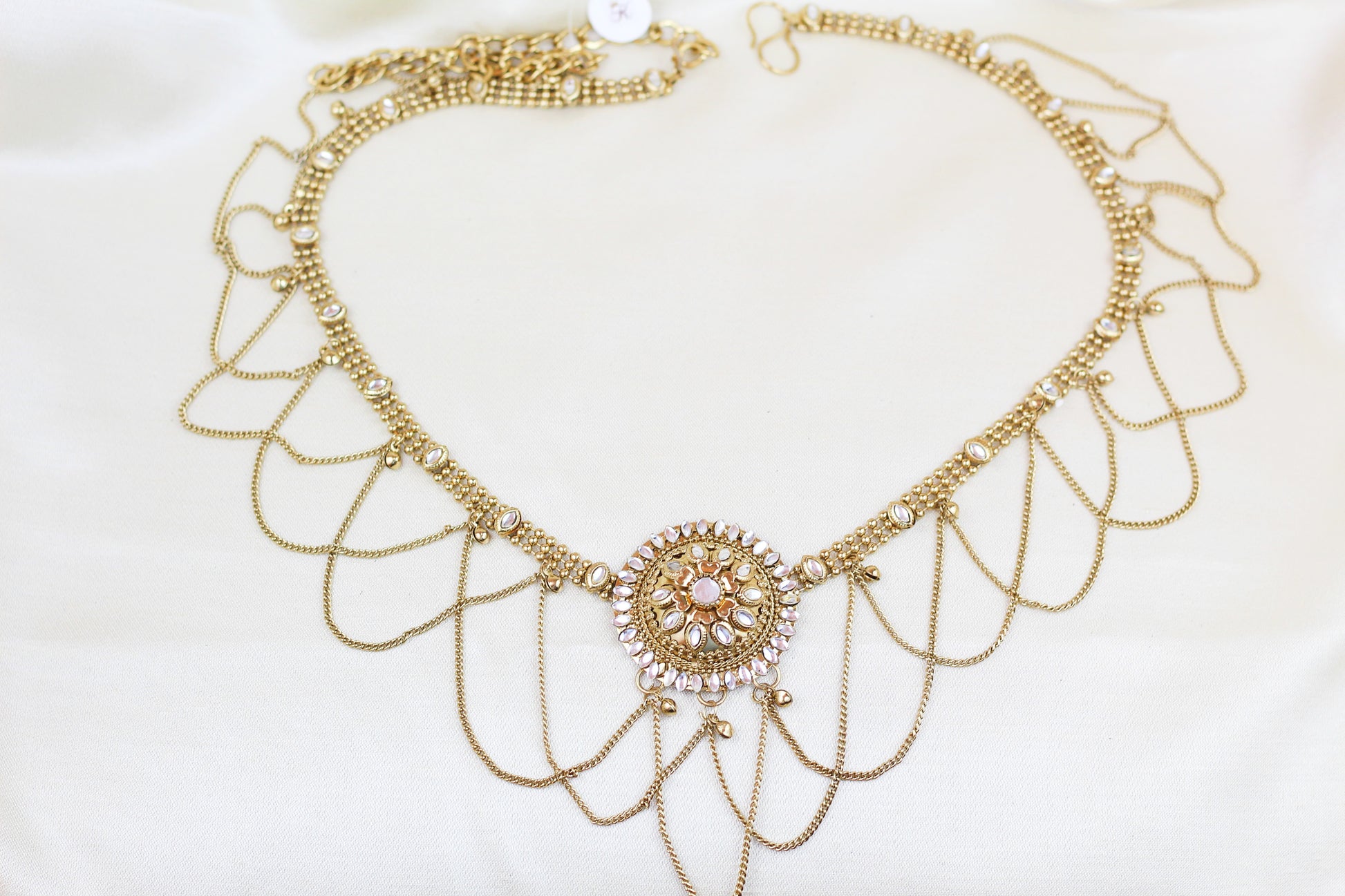OXIDIZED AND KUNDAN WAIST BELT WITH FRILL
