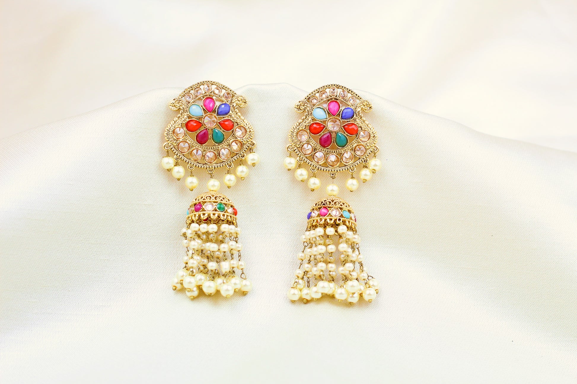 POLKI AND MULTI COLOUR BEADS JHUMKA