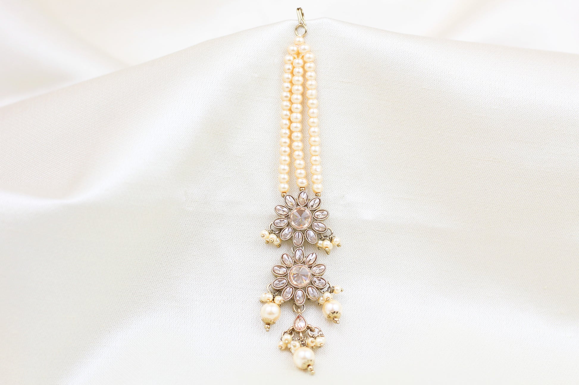 POLKI WITH CREAM BEADS MAANG TIKKA
