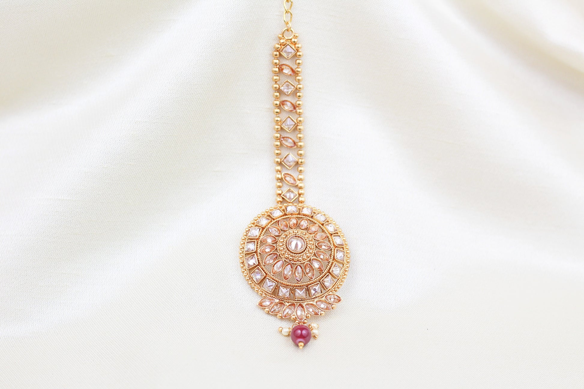 POLKI WITH RUBY PEARL DROP MAANG TIKKA