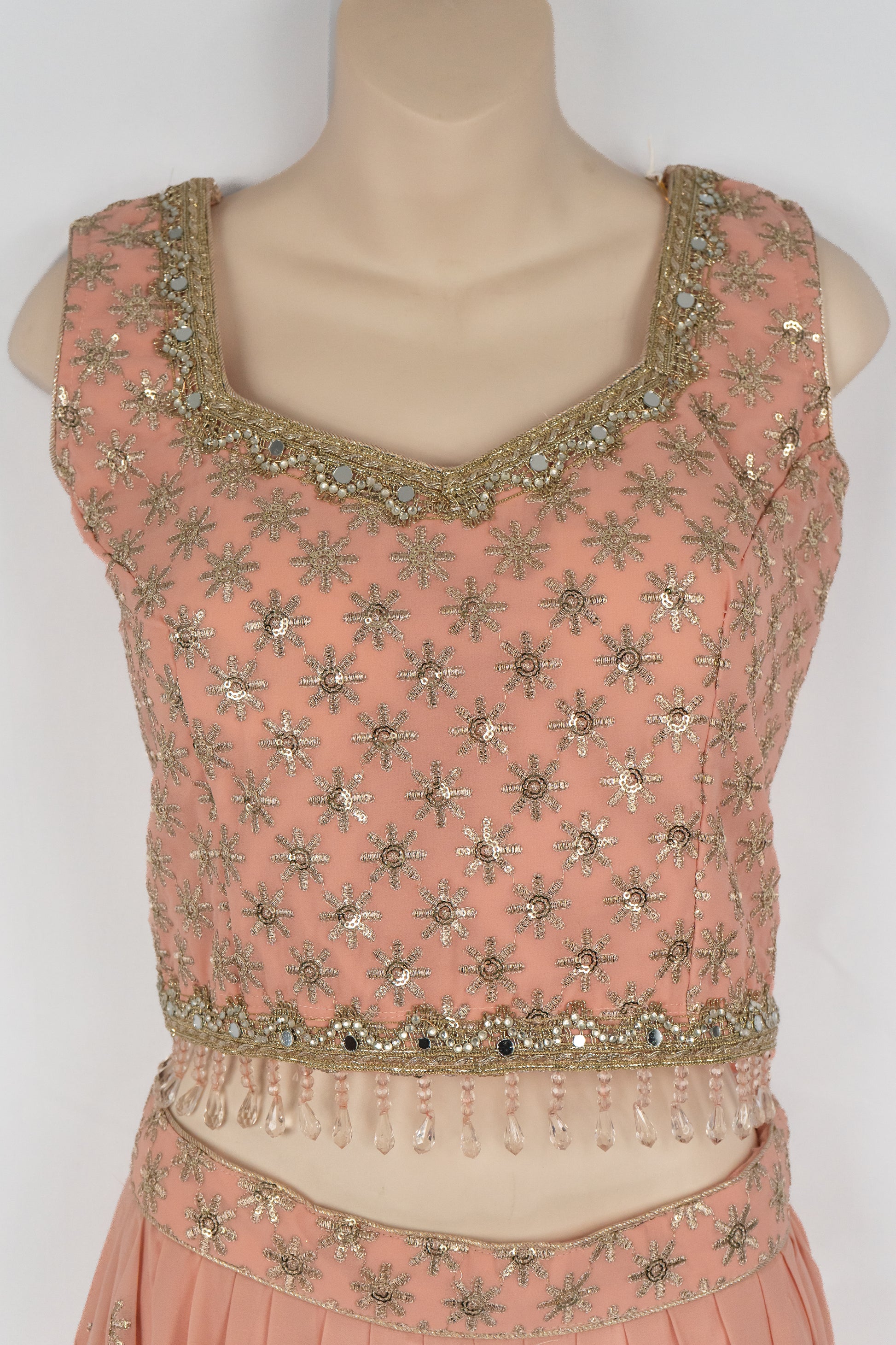 Top: Light Gold Jari and Sequence Embroidered Georgette Crop Top (includes sleeves material)