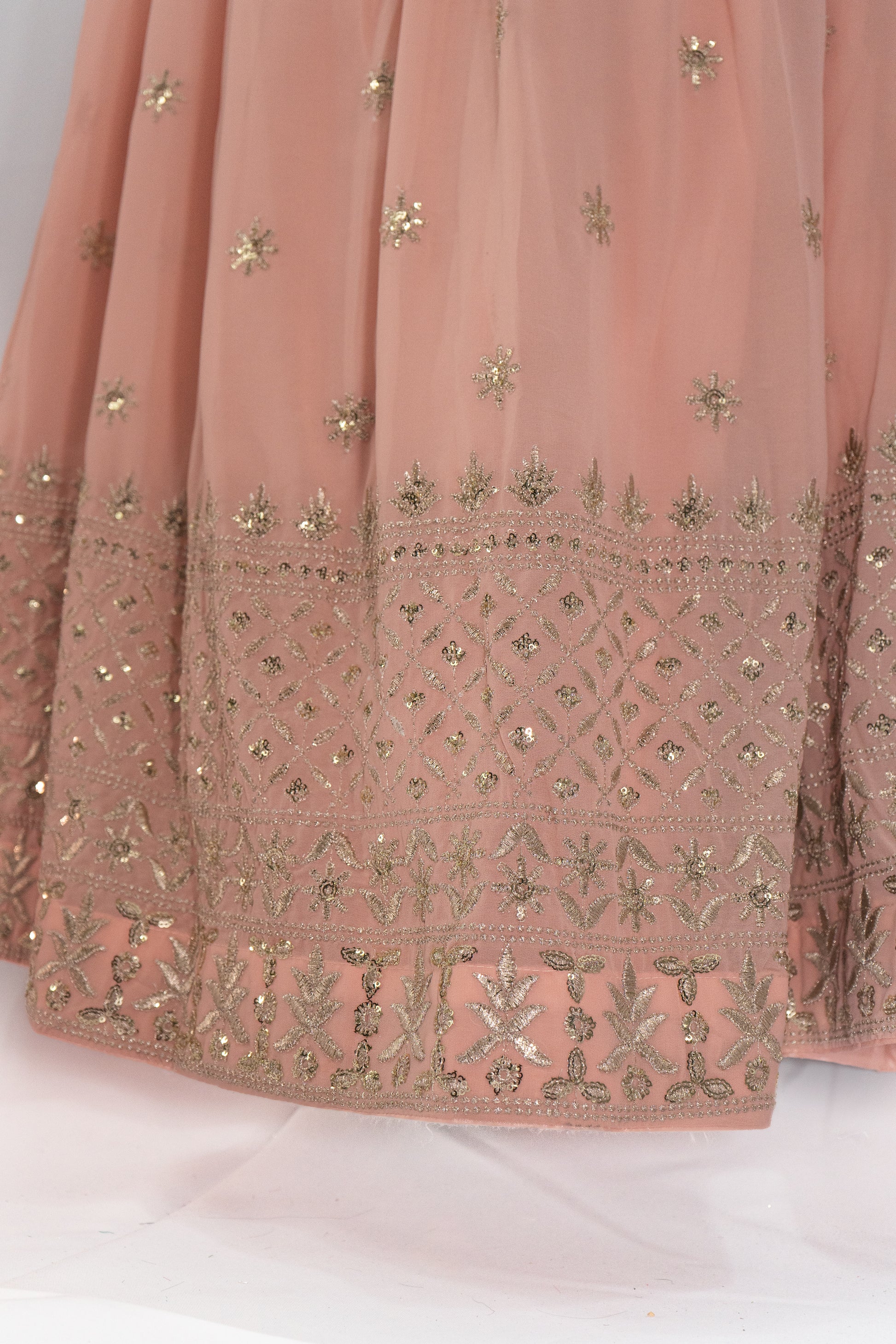 Bottom: Light Gold Jari and Sequence Embroidered Georgette Lehenga (skirt)