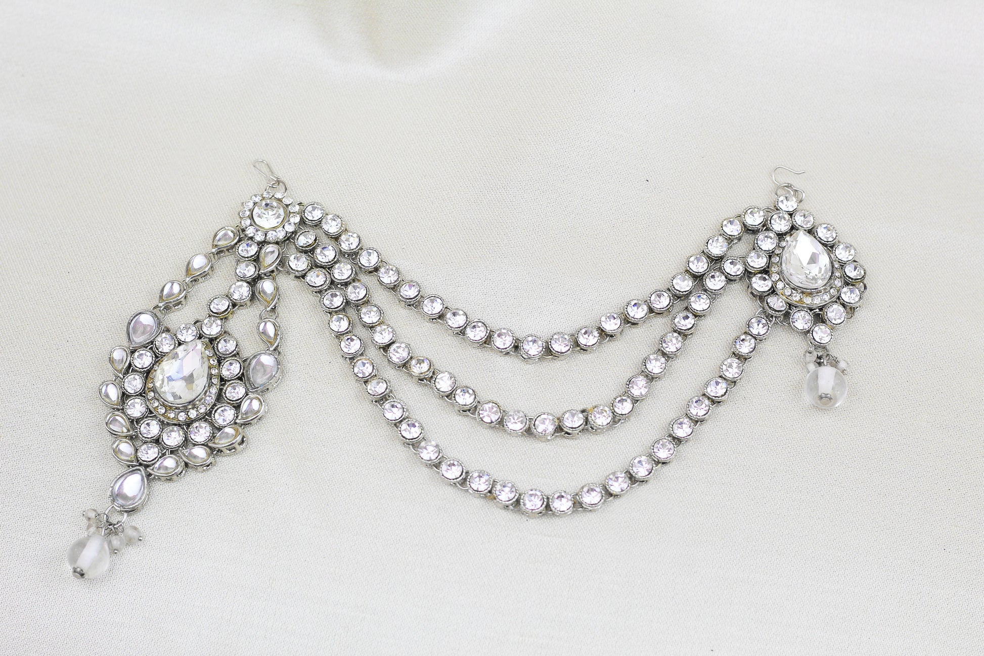 SILVER FINISH RHINE STONE HALF MATHA PATTI (ONE SIDE)